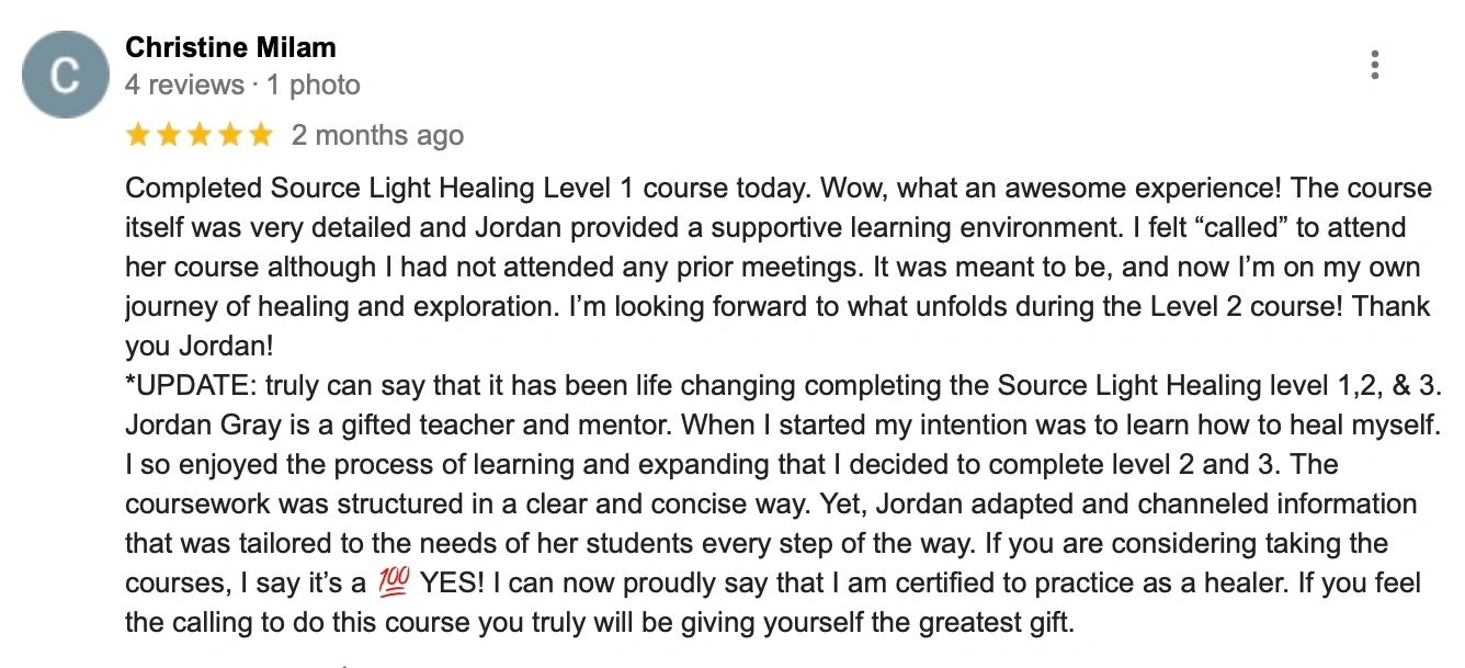 Source Light Energy Healing is a modality of energy healing that was created through many years of training and practice. I spent many years exploring, studying, and practicing energy work until I was able to develop a method that was not only highly effective in accessing higher realms of consciousness, but that also protects the healer and their energy field from picking up their client's energies. Being a highly sensitive person it was very important for me to find the right tools and techniques to help achieve a high level of protection.